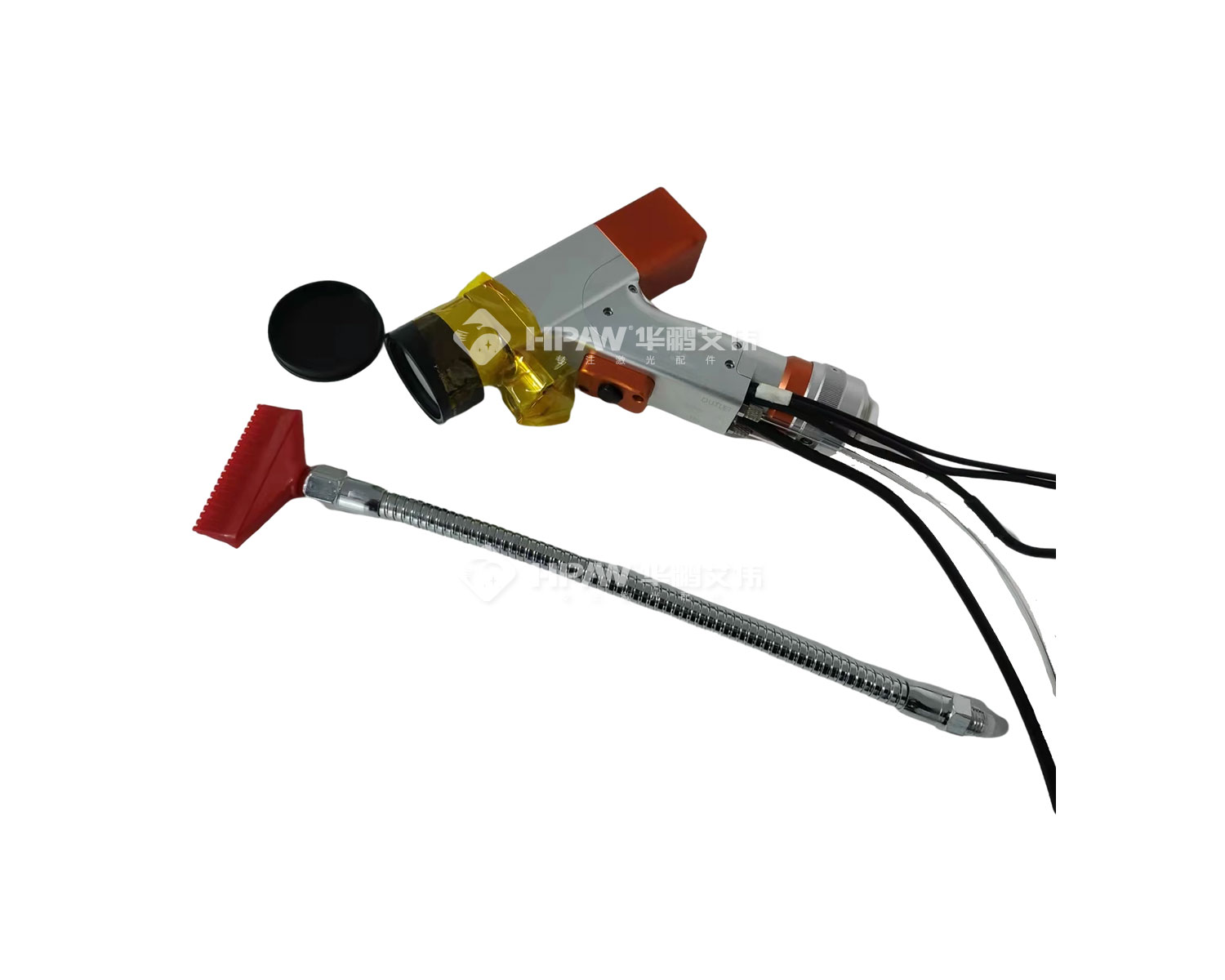 本款QBH手持擺動清洗頭由光纖手持清洗頭、驅動控制器、觸摸屏、電源及連接線組成,型號為HPCL100ASC,由深圳市華鵬艾偉提供技術支持,適用于市面上大部分手持激光焊接。